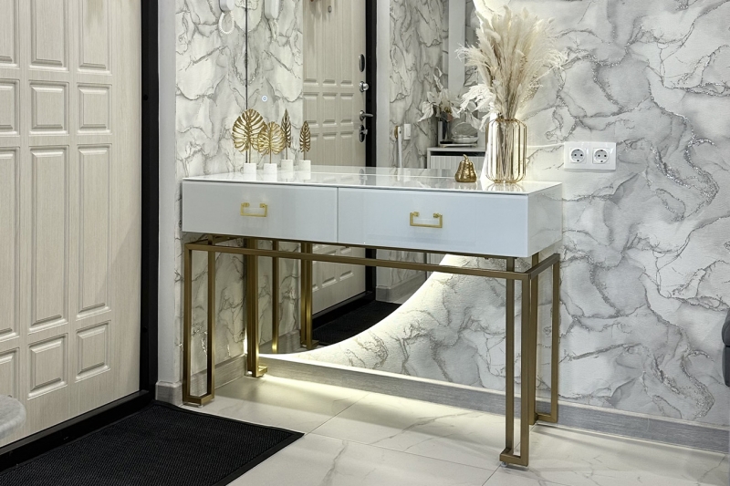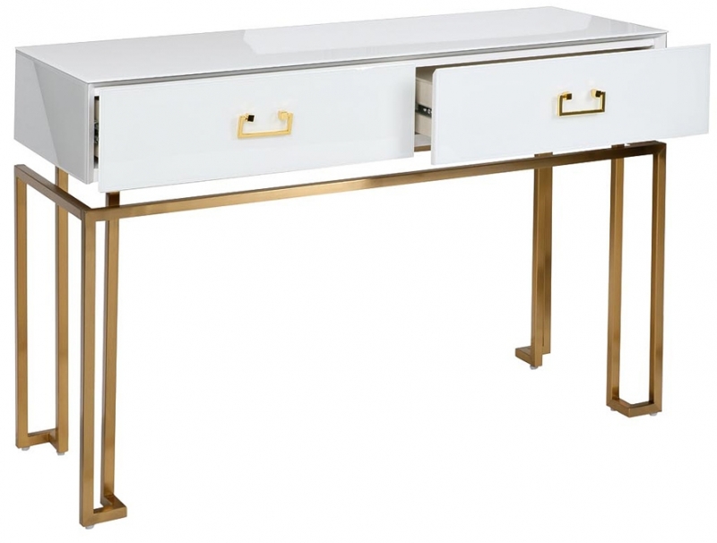 Представленная консоль с ящиками – элегантный и удобный предмет интерьера. Эта вещь, помимо предельной эстетичности, еще и весьма функциональная. Наличие ящичков позволяет использовать предмет для хранения бытовых мелочей. Это поможет организовать пространство, держать вещи в порядке. Такая белая консоль напоминает нечто среднее между изящным комодом и тумбой. Вы сможете разместить консоль из стекла в гостиной или спальне. Она прекрасно сочетается с современными стилями интерьера. Консоль составит элегантный ансамбль с тумбочками схожего дизайна арт.KFG085 и зеркалами арт.KFG047, арт.KFE1270, арт.KFG081.