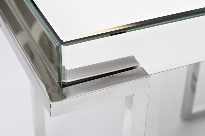 Консоль Jerilyn поражает своим минималистичным и современным дизайном. Она представлена в элегантной зеркальной отделке, что придаёт ей особое очарование. Хромированные ножки делают конструкцию легкой и воздушной, а сама модель выглядит как произведение искусства. Столешница из зеркала не только визуально расширяет пространство, но и добавляет блеска и шика, что делает консоль настоящим акцентом в интерьере.