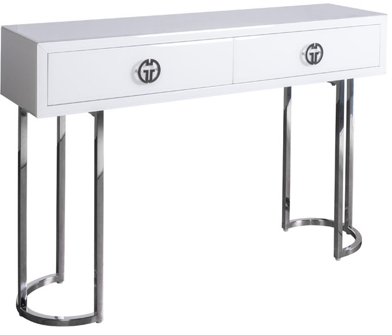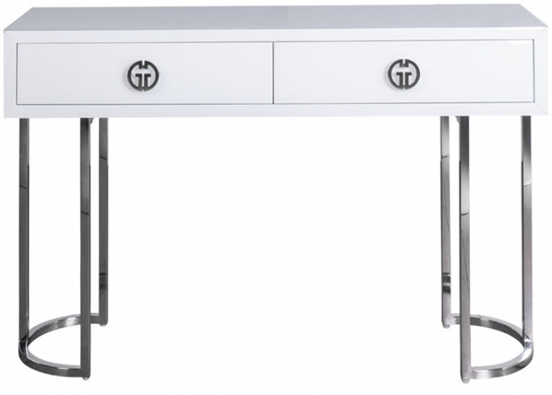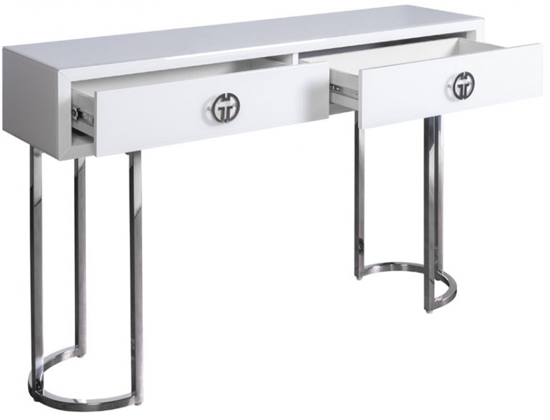 Консоль GD 120X30X78 CM представляет собой стильный предмет мебели с оригинальным дизайном. Ее белый цвет гармонично сочетается с хромированными ножками из нержавеющей стали, что создает эффектный контраст. Стеклянная столешница придает изделию легкость и воздушность, а изящные линии ножек добавляют в композицию современности. В оформлении присутствует элегантная простота, что делает консоль универсальным элементом для любого интерьера.