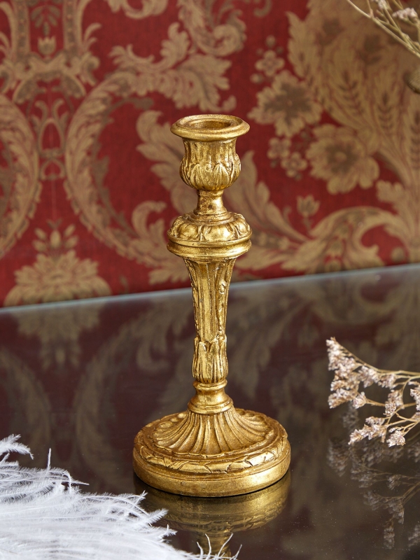 Подсвечник «Oseias» выполнен в антикварном стиле, что придает ему особую изысканность. Золотистый цвет и искусственное состаривание создают впечатление древности и уникальности. Рельефные детали и плавные линии делают его не просто подсвечником, а настоящим произведением искусства, которое привлекает внимание и вдохновляет на создание уютной атмосферы.
