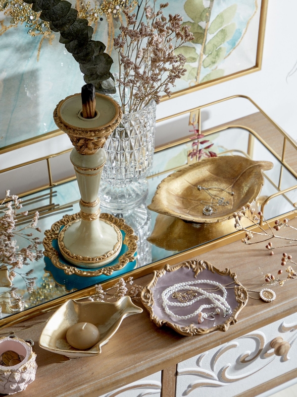 Изящное декоративное блюдо с мягким золотистым сиянием и выразительной асимметричной формой добавляет интерьеру благородный акцент. Этот вариант идеально подойдет для консоли, туалетного столика или журнального столика и поможет создать атмосферу уюта, света и утончённой декоративности.