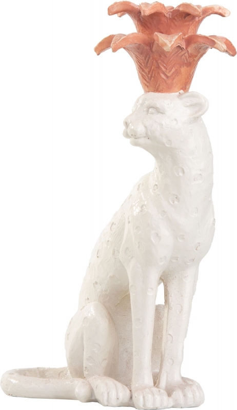 Подсвечник «Penelope» выполнен в виде грациозного леопарда, который мирно сидит, добавляя изысканности вашему интерьеру. Стильный и современный, он сочетает в себе белоснежный цвет с нежными акцентами оранжевого в верхней части, что создает яркий контраст. Изготовленный из качественного материала, подсвечник отличается искусственным состариванием, придающим ему уникальный шарм. Его фактура и детализированное оформление вызывают желание прикоснуться и восхищаться каждым элементом.