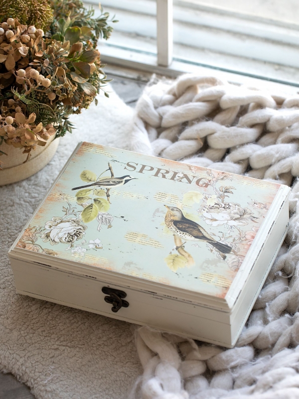 Нежная декоративная шкатулка с весенним настроением объединяет практичное хранение и уютный интерьерный акцент. Этот вариант идеально подойдет для спальни, туалетного столика или гостиной и поможет создать атмосферу легкости, тепла и романтики.