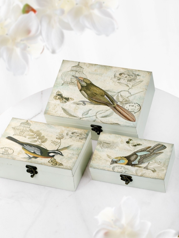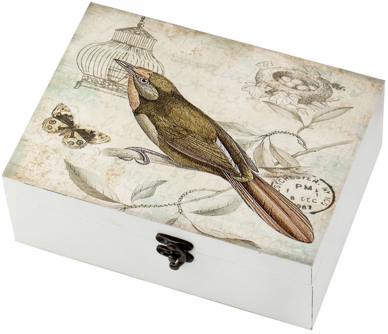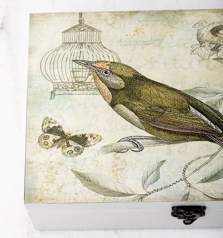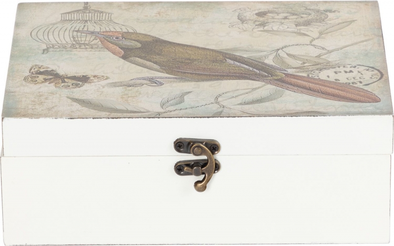 Нежная шкатулка с изображением птицы, бабочки и винтажных ботанических мотивов добавляет интерьеру спокойствие, уют и характер. Этот декоративный аксессуар идеально подойдет для спальни, гостиной или туалетного столика и поможет создать атмосферу тепла и утончённой романтики.