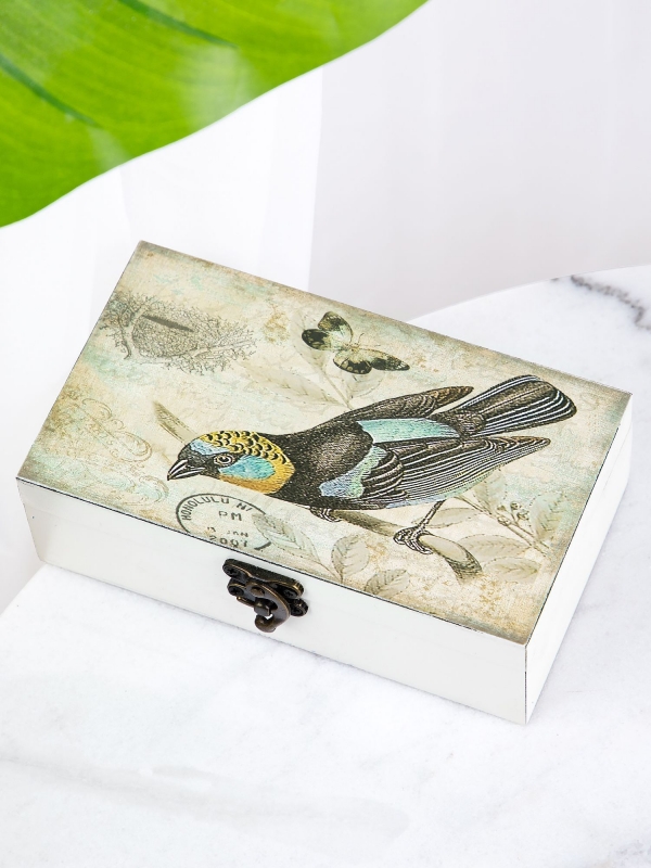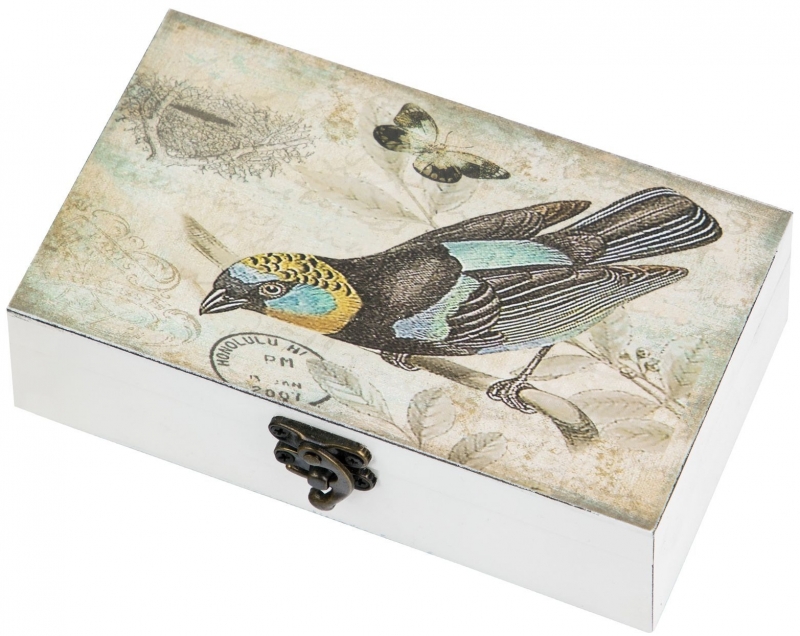 «Шкатулка Conall» с винтажным рисунком птицы | Прованс и винтаж | для хранения украшений от HomeAdore