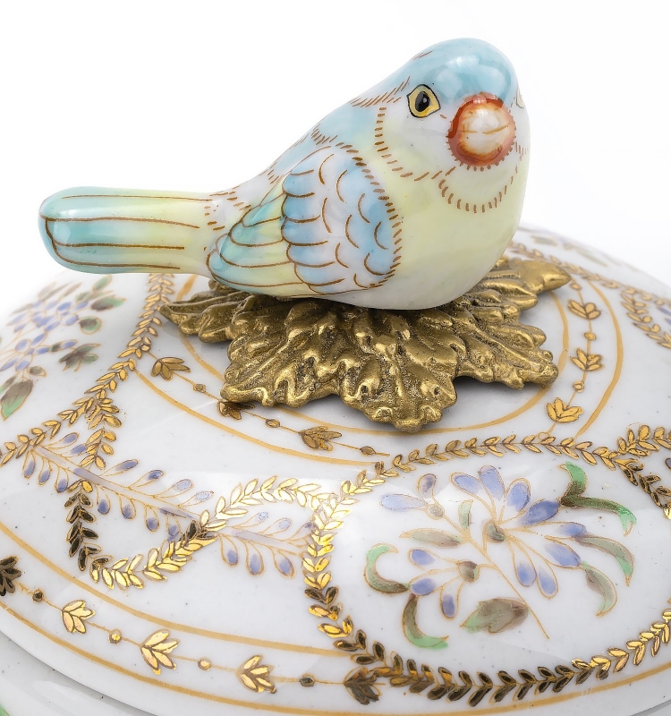 Нежная фарфоровая шкатулка с фигуркой птицы на крышке добавляет интерьеру ощущение тишины, уюта и благородной декоративности. Этот вариант идеально подойдет для спальни, гостиной или будуара и поможет создать атмосферу утончённой классики.