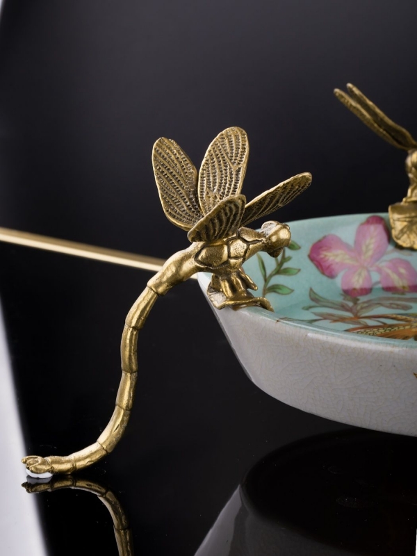 «Vesna» декоративное блюдо с бронзовыми стрекозами | восточная эклектика | ботанический декор от HomeAdore