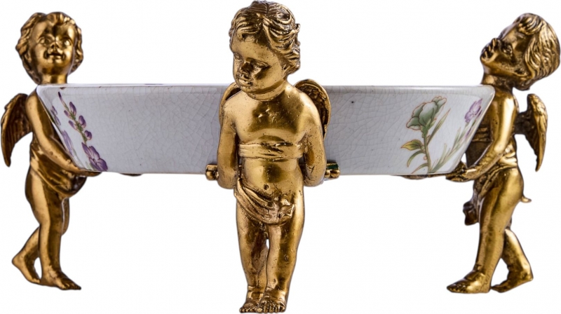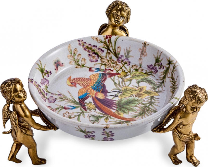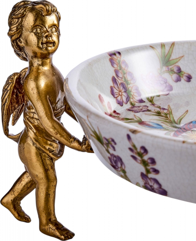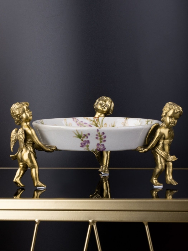 «Блюдо декоративное Filip» с фарфоровой чашей и фигурами ангелов | классический стиль | изысканный акцент от HomeAdore