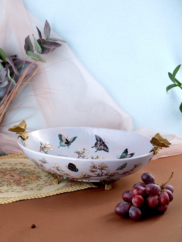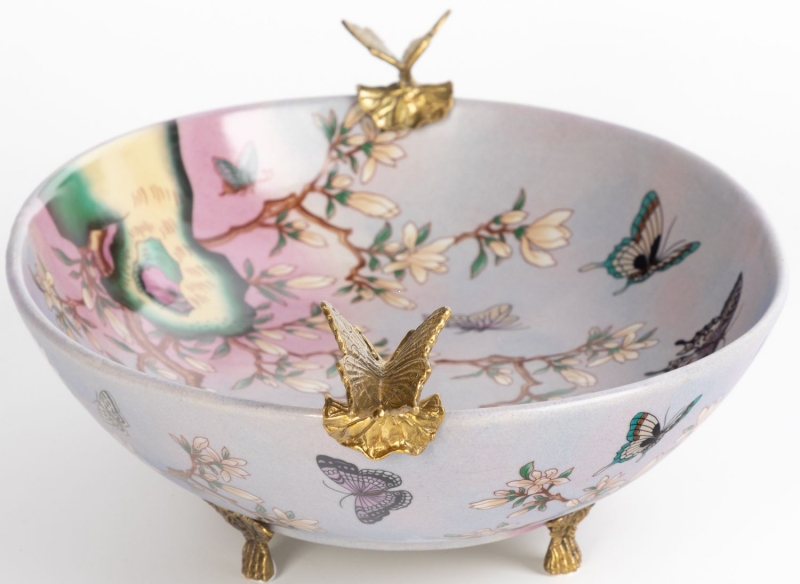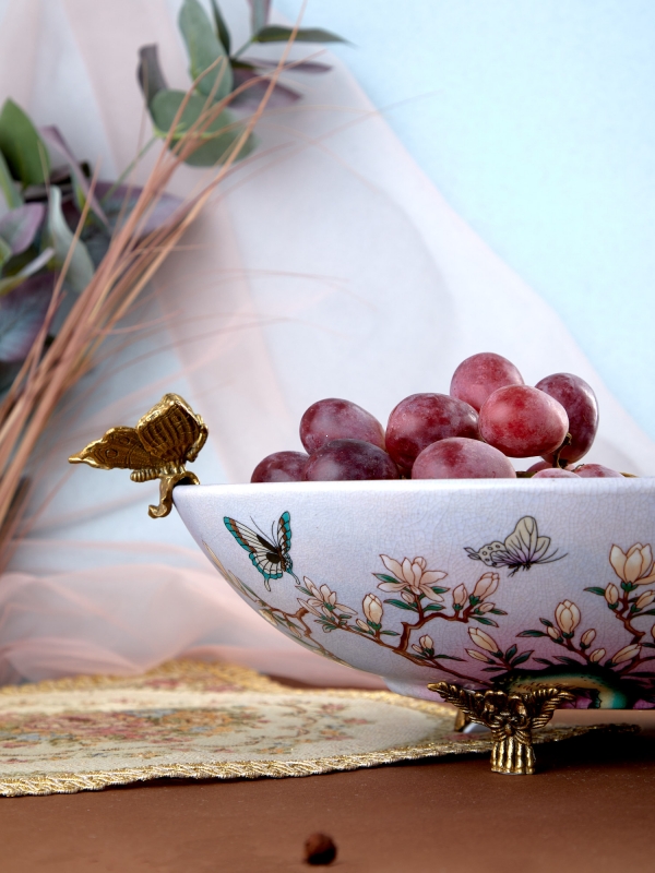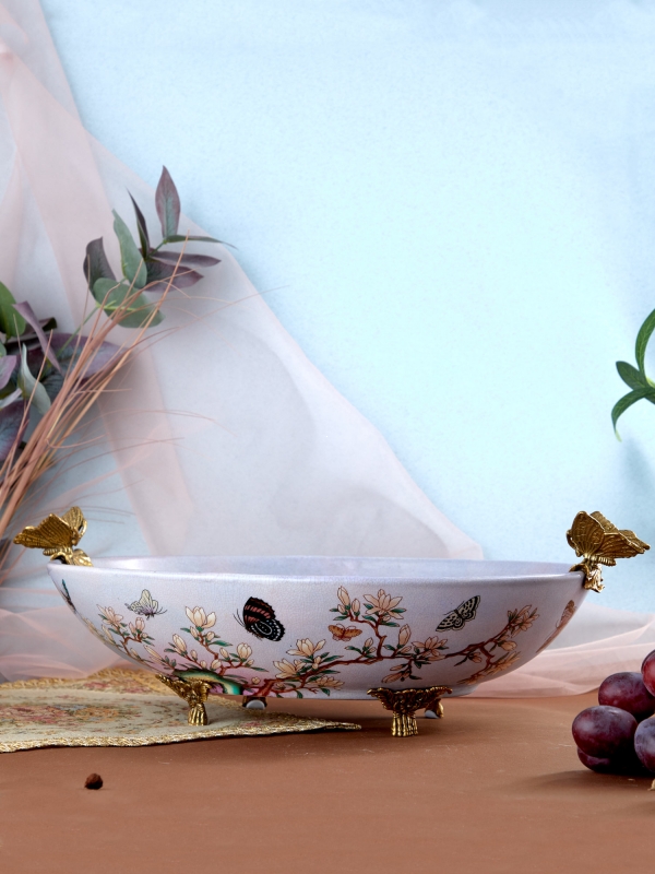 Нежное декоративное блюдо с цветущими ветвями, бабочками и благородными бронзовыми деталями привносит в интерьер ощущение утончённости и тихой роскоши. Этот вариант идеально подойдет для гостиной, столовой или спальни и поможет создать атмосферу лёгкости, тепла и художественного вкуса.
