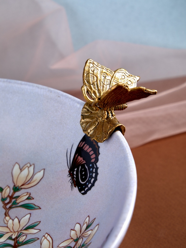 «Floriana» декоративное блюдо с бабочками и бронзовыми акцентами | восточная классика | изящный декор от HomeAdore