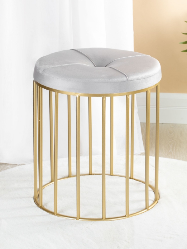 Удобный пуфик на металлическом каркасе и с приятной на ощупь велюровой обивкой, идеально впишется в любое помещение, а благодаря своему дизайну, станет изысканным дополнением в ваш интерьер.