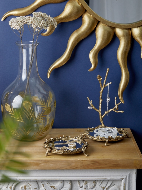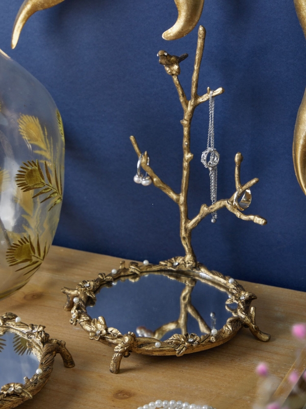 Изящное декоративное блюдо с зеркальной чашей и ветвью для украшений соединяет в себе поэтичный декор и практичность. Этот вариант идеально подойдет для туалетного столика, консоли или комода и поможет создать атмосферу утончённого уюта с лёгким винтажным настроением.