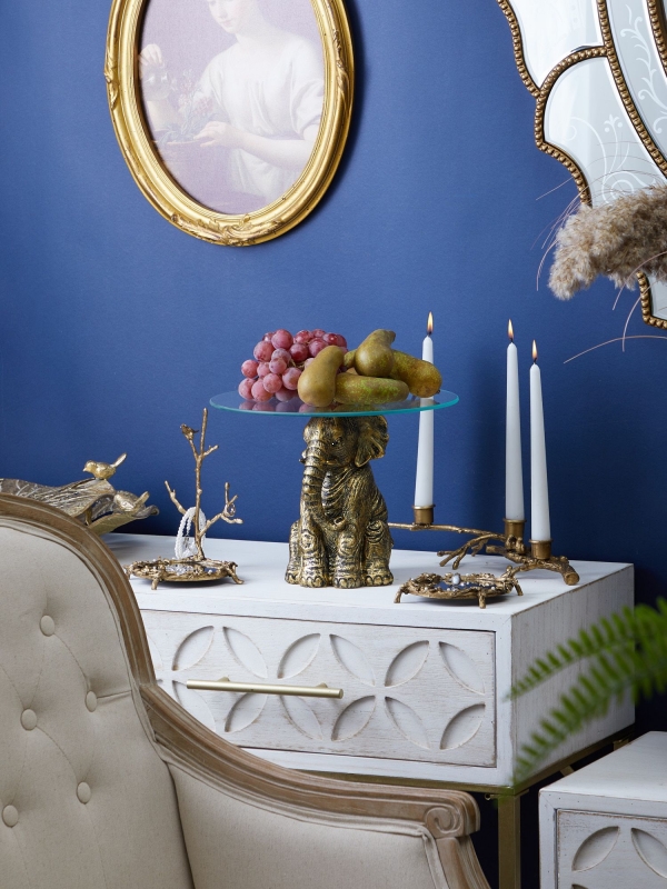Эта декоративная тарелка для интерьера органично смотрится в винтажных, классических, романтических и эклектичных пространствах. Она хорошо дополняет интерьер в стиле прованс, ар-деко, французская классика, botanical chic и soft glam. Если Вы ищете небольшой, но выразительный декор для комода, консоли или прикроватной зоны, модель Raiden поможет добавить интерьеру глубину, блеск и ощущение продуманной декоративности. Особенно красиво блюдо сочетается с зеркалами, стеклянными вазами, латунными деталями, свечами и текстилем в тёплой природной гамме.