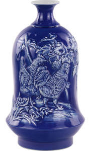 Высота: 44 см. Ширина: 30 см. Глубина: 16 см. Форма: округлая с утолщением в верхней части, что придает вазе особую выразительность. Декоративные элементы: рельефные узоры и яркие цветочные рисунки.