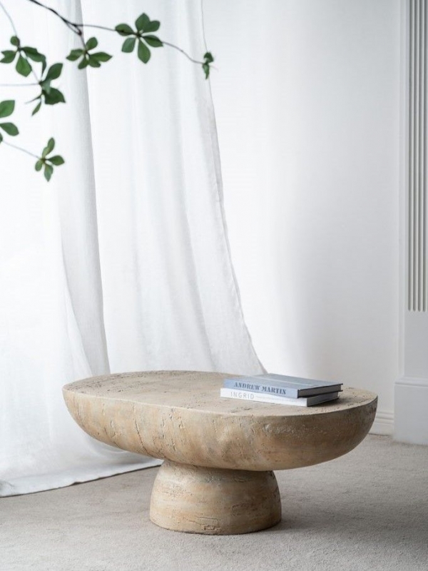 Внешний вид столика сочетает в себе современные мотивы и минимализм. Длинная овальная столешница, выполненная из полирезины, и округлое основание придают изделию особую элегантность и изысканность. Нейтральная цветовая гамма позволяет легко интегрировать столик в различные стили интерьера.