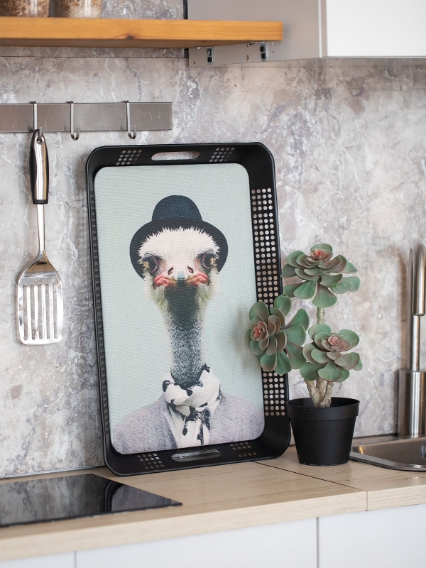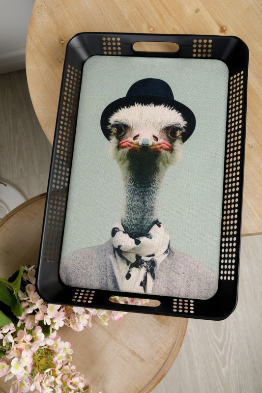 «Kalevi» декоративный поднос с арт-принтом страуса | эклектика | акцентный декор от HomeAdore