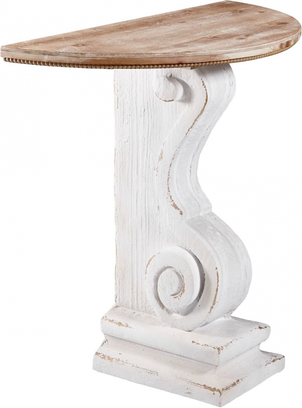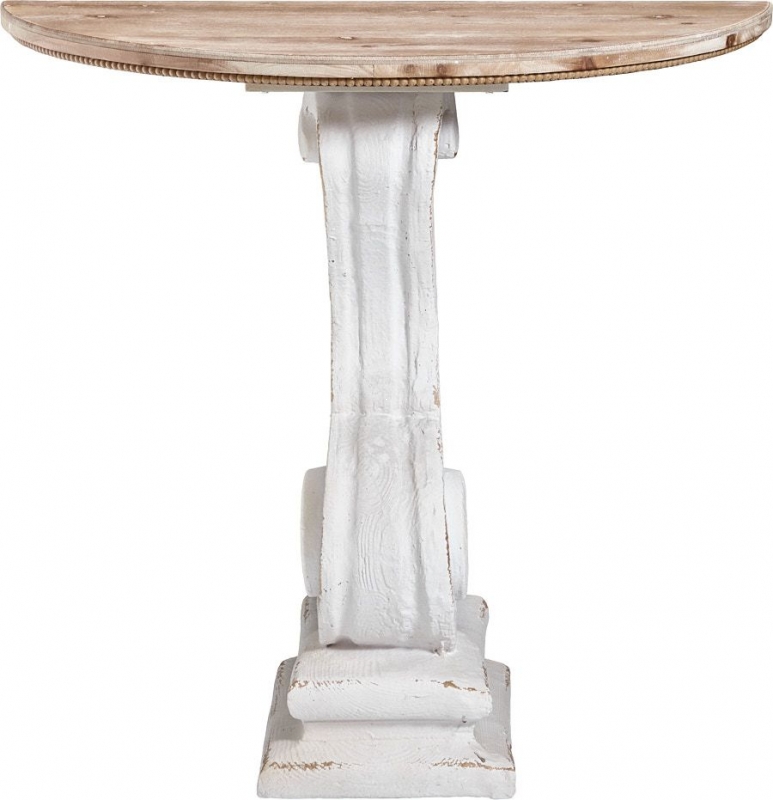 Консоль Despina сочетает в себе классический и современный дизайн. Ее изогнутая форма и декоративные элементы создают эффектный визуальный акцент. Цветовая гамма включает теплые деревянные оттенки на поверхности и белоснежный цвет основания, что придает изделию уютный и свежий вид. Материал — высококачественное дерево с эффектом искусственного старения, что придает каждой консоли уникальность. Поверхность имеет естественные неровности и потертости, создающие атмосферу старинного шедевра.