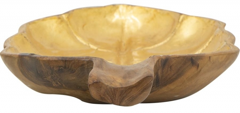 «Блюдо Ymir» из тикового дерева с золотистой отделкой | Эко-стиль с тропическим акцентом | Декоративное блюдо от HomeAdore