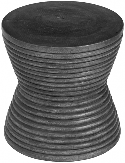 Столешница выполнена из естественного суарового дерева, что придает ей глубокий черный оттенок и подчеркивает натуральную текстуру. Матовая поверхность создает ощущение тепла и уюта, а рельефные узоры добавляют характер.