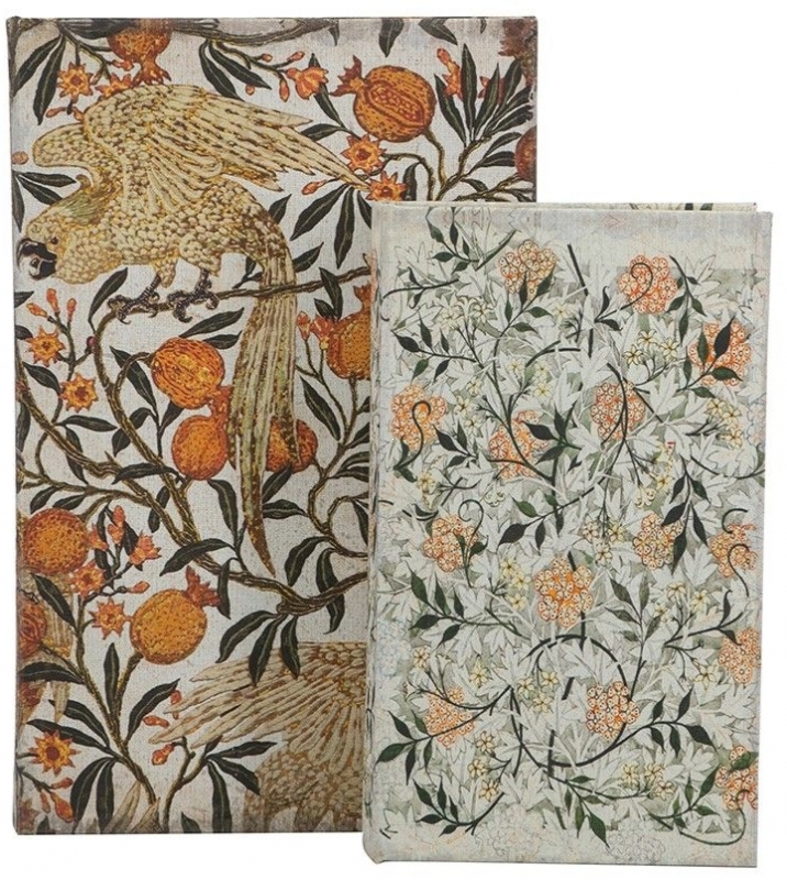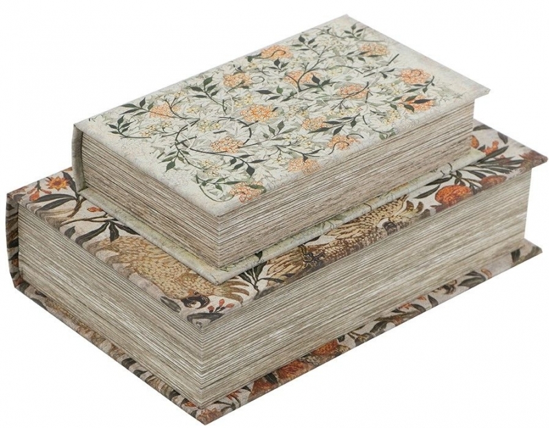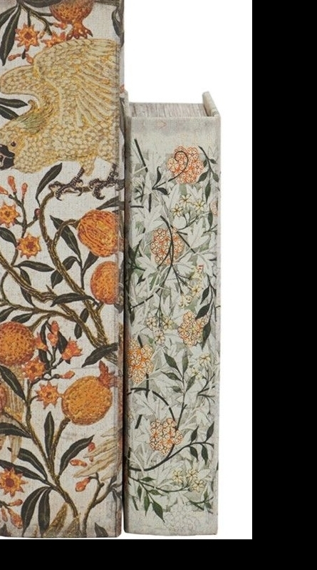 «Набор из двух шкатулок в виде книг Danu» с ботаническим орнаментом и птицей | винтажный стиль | декоративное хранение от HomeAdore