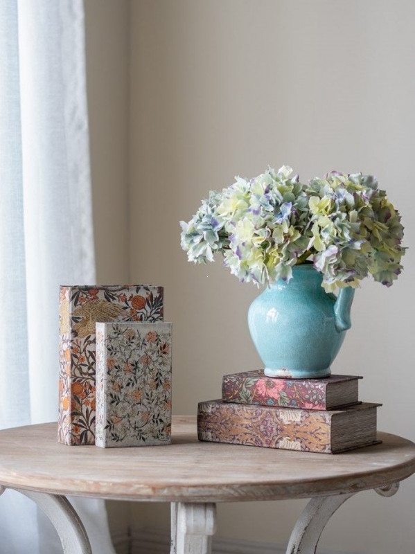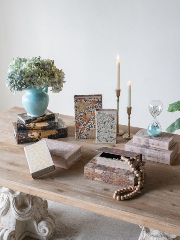 Изящный набор шкатулок-книг сочетает эстетику старинных иллюстраций и практичное хранение. Тёплые природные оттенки, цветочные мотивы и сюжет с птицей делают его выразительным акцентом для полки, консоли или каминной зоны и помогают создать атмосферу уюта и тихой классики.