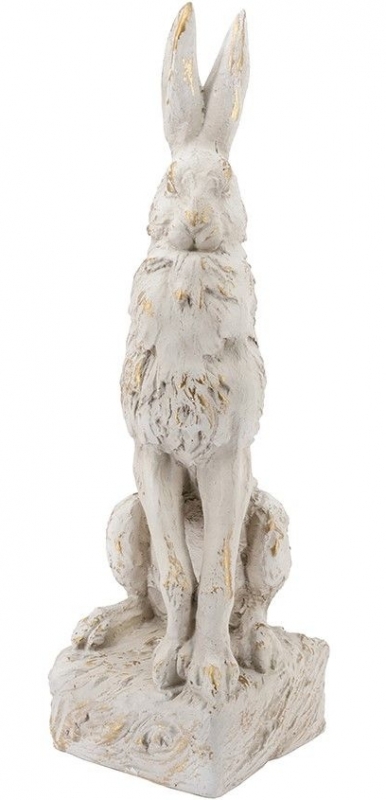 Эта статуэтка изображает зайца, символизирующего весну и обновление. Винтажный стиль исполнения с заметными потертостями и эффектом реставрации придаёт ей особую харизму и индивидуальность. Цветовая гамма представлена в нежных серых и белых тонах, дополненных золотистыми акцентами, что делает её универсальной для различных интерьеров. Материал — качественный полимер, который обеспечивает долговечность и лёгкость в уходе. Каждая деталь проработана с любовью, создавая ощущение живого существа, готового занять свое место в вашем доме.