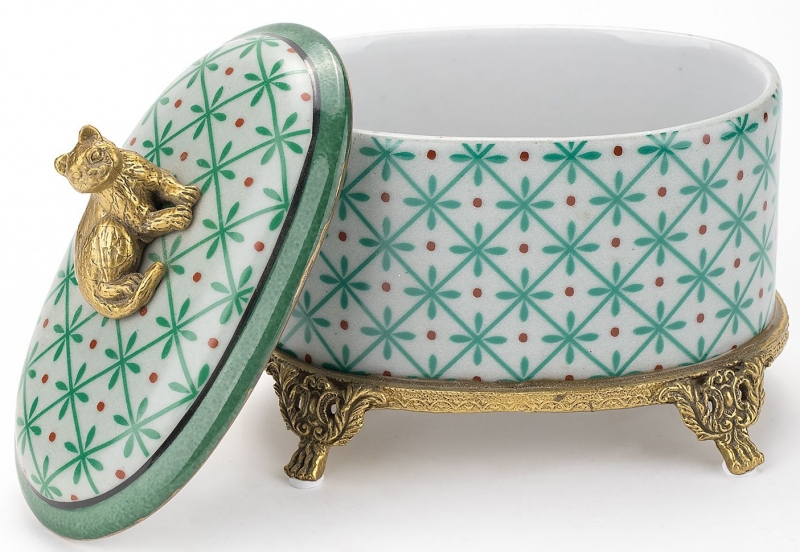 Изящная фарфоровая шкатулка с бронзовыми деталями добавляет интерьеру характер, тепло и тонкую декоративность. Этот вариант идеально подойдет для спальни, гостиной или будуара и поможет создать атмосферу уюта с нотами благородной классики.