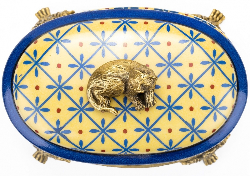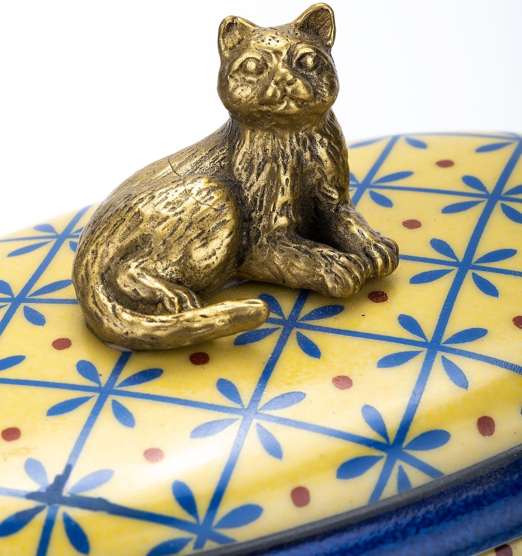 - Фигурка кошки на крышке делает шкатулку заметным интерьерным акцентом