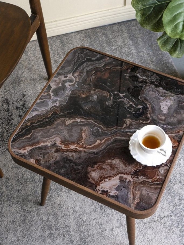 Квадратная столешница и изогнутые ножки создают визуальную легкость и стабильность, что делает столик не только стильным, но и функциональным.