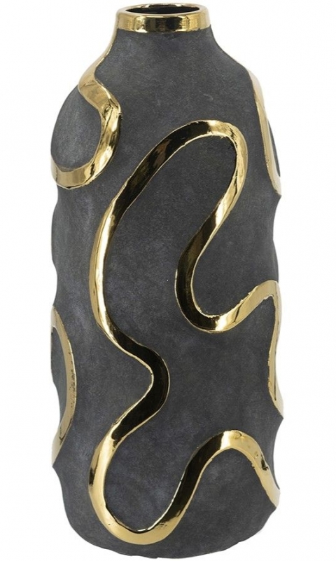 Элегантная и выразительная форма вазы «Deniece» с яркими акцентными полосами на черном матовом фоне создаст уникальную атмосферу в вашем пространстве. Золотистый блеск, нежно переплетающийся с глубиной черного, восхищает и привлекает внимание. Эта ваза идеально подойдет для шикарного офиса или гостиной и поможет создать атмосферу изысканности и уюта. Она станет идеальным подарком для ценителей искусства и стиля на любой праздник.