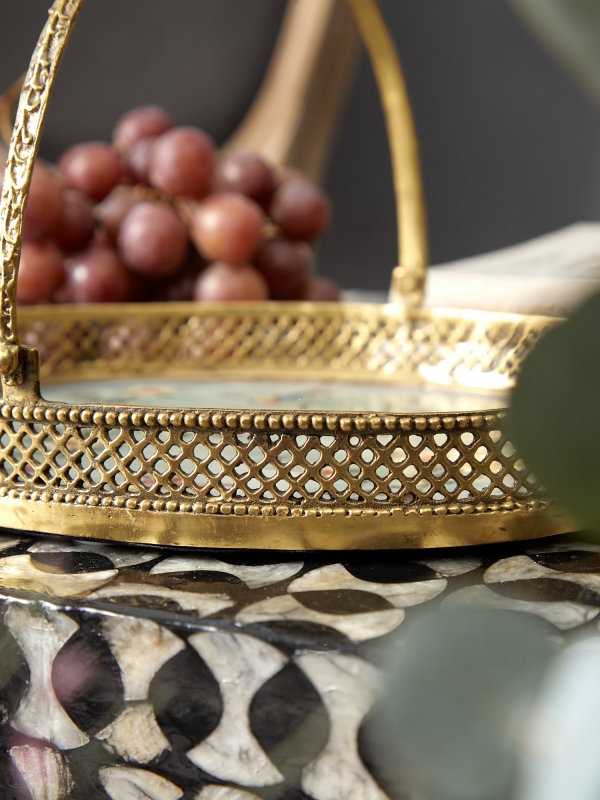 «Декоративное блюдо Njord» в бронзово-золотой отделке с цветочным рисунком | Винтажная классика | Изящный акцент от HomeAdore