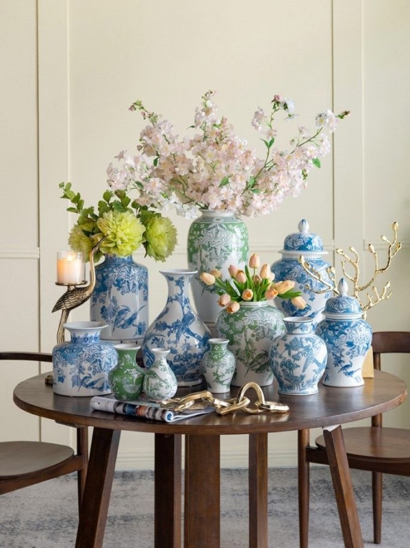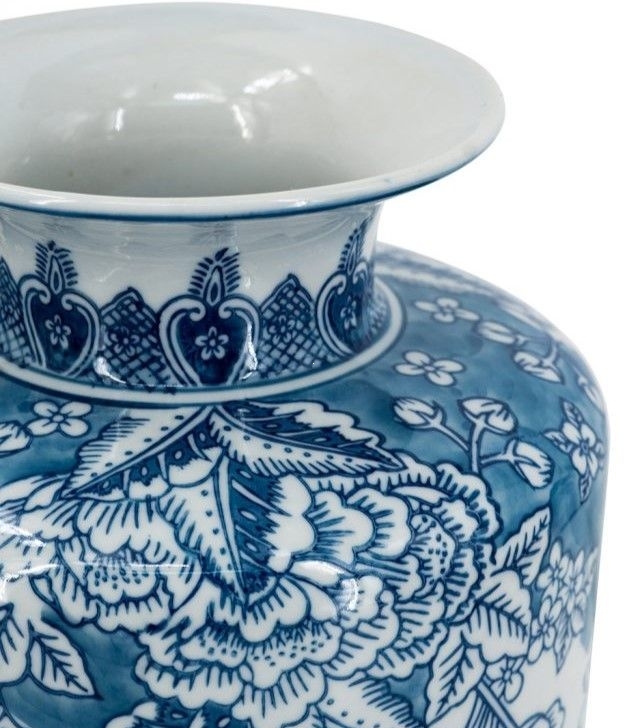 Эта ваза символизирует утонченность и художественный вкус, в ее дизайне прослеживаются элементы восточной культуры. Стиль вазочки — традиционный китайский, который великолепно сочетает в себе классические и современные нотки. Цветовая гамма — нежные оттенки белого и синего, которые создают освежающий и легкий вид.