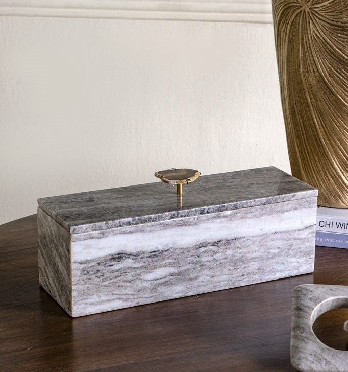 «Balor» шкатулка из натурального мрамора в серо-бежевых оттенках | Современный минимализм с нотами арт-деко | Благородное хранение от HomeAdore