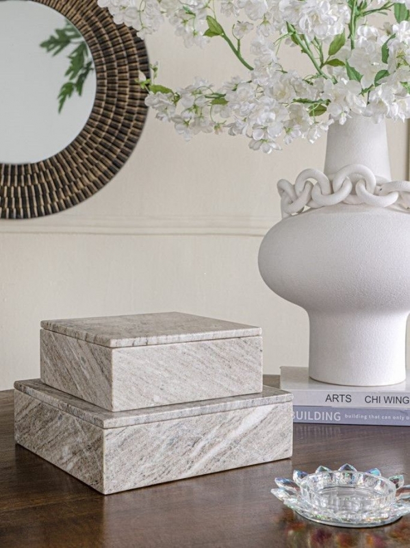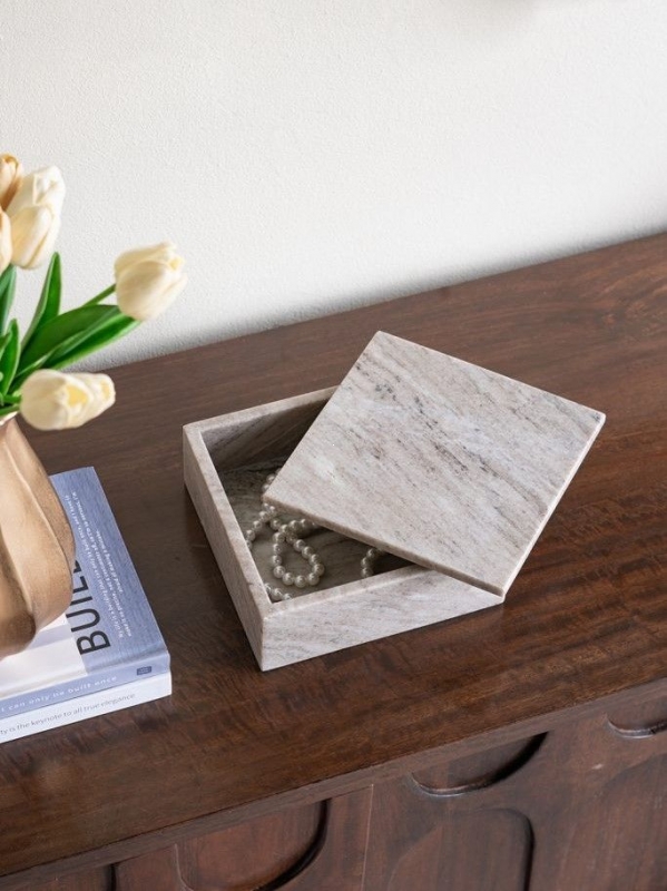 Лаконичная мраморная шкатулка с выразительным природным рисунком добавляет интерьеру ощущение тишины, порядка и благородной фактуры. Этот вариант идеально подойдет для спальни, гостиной или кабинета и поможет создать атмосферу спокойствия и визуальной гармонии.