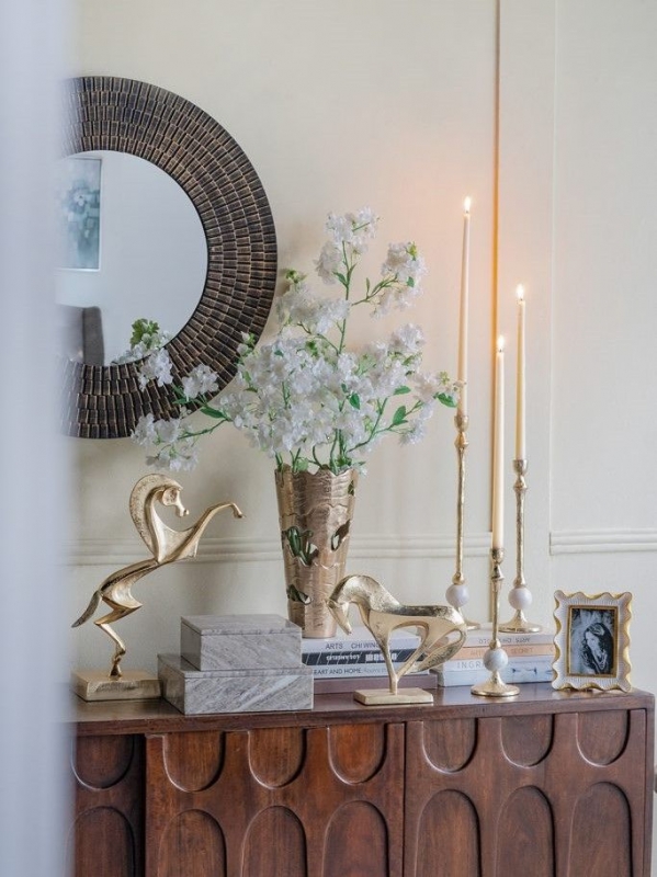 - для гостиной — как декоративный акцент на консоли, комоде или столике