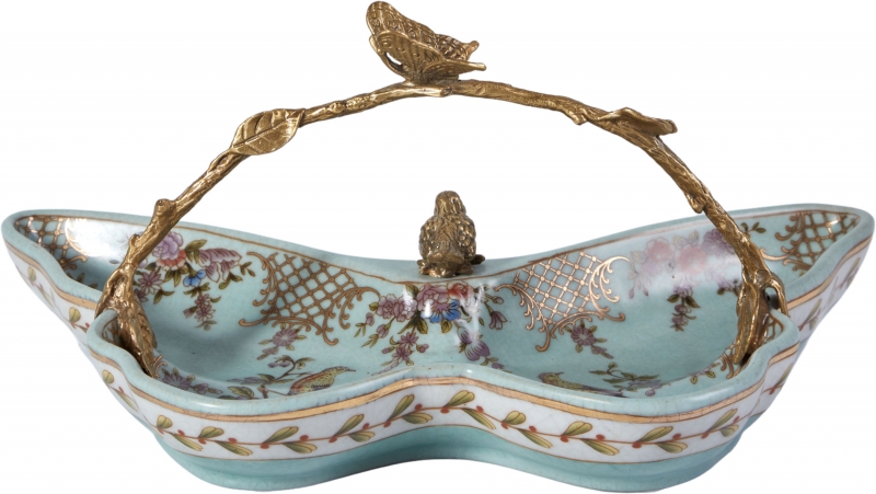 «Hedviga» в нежно-бирюзовом фарфоре с бронзовыми акцентами | Классический романтизм | Декоративное блюдо от HomeAdore