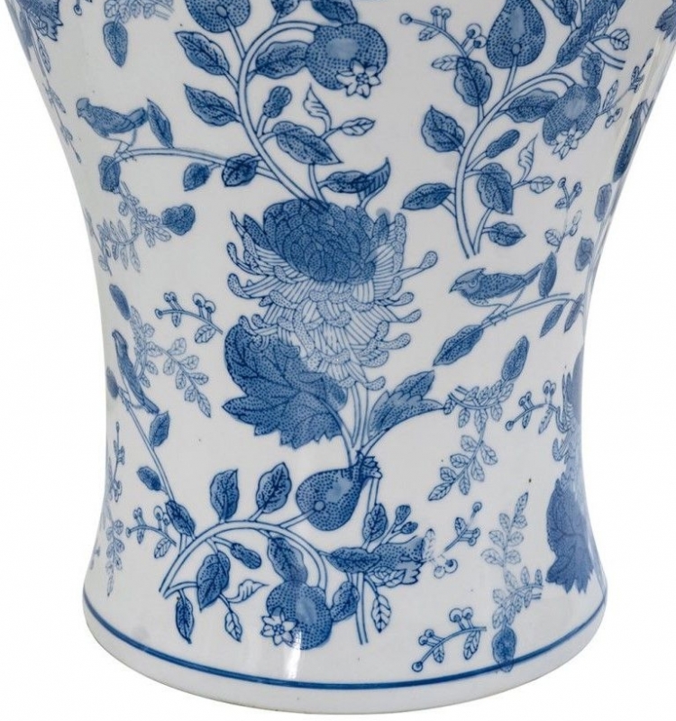 Эта ваза символизирует гармонию и элегантность. Ее классический стиль и сдержанная цветовая гамма — белый и синий — привносят в интерьер нотки изысканности. Изготовленная из качественного фарфора, она обладает гладкой фактурой, а детализированные цветочные узоры создают неповторимый визуальный эффект. Ощущение легкости и свежести дополняет ее облик, делая вазу не только функциональным предметом, но и настоящим произведением искусства.