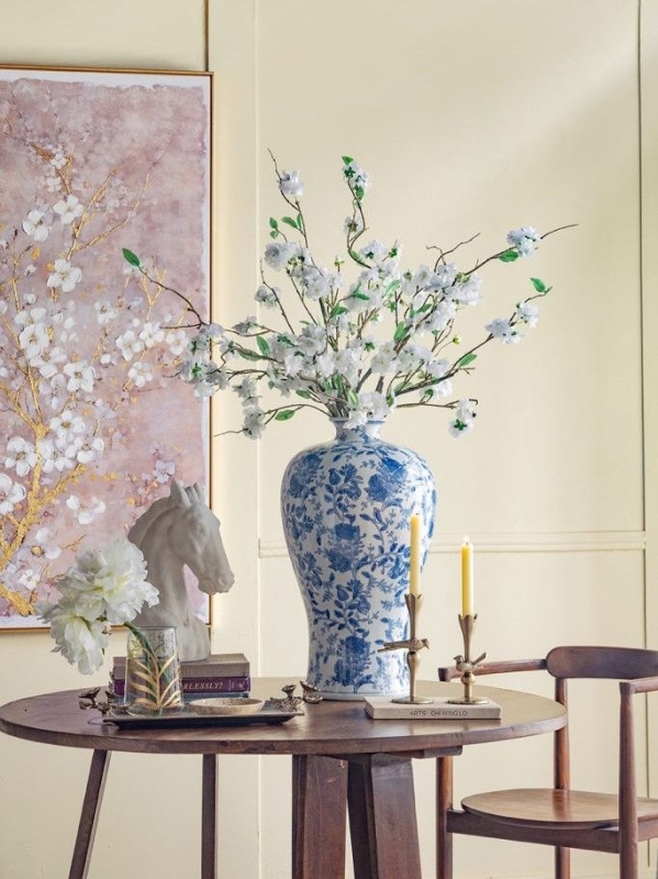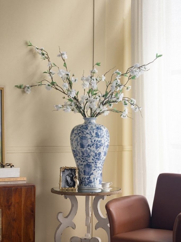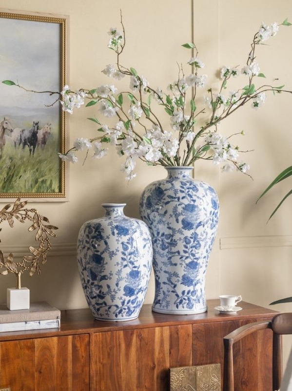 Эта великолепная фарфоровая ваза, вдохновленная элегантным дизайном времен династии Мин в Китае, станет настоящим украшением вашего дома. Узкое горлышко и широкий округлый силуэт создают гармоничное сочетание, а изящные синие цветочные мотивы на белоснежном фоне дарят ощущение свежести и утонченности. Эта ваза идеально подойдет для вашего журнального столика или каминной полки и поможет создать атмосферу уюта и стиля. Она станет идеальным подарком для ценителей искусства и красоты на любой праздник.