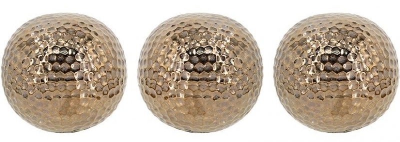 Керамический декор в виде трёх шаров символизирует гармонию и баланс. Их гладкая поверхность с бронзовым рельефом создает эффект игры света, добавляя глубину и текстуру. Эти шары выполнены в минималистичном стиле, что делает их универсальными для различных интерьеров. Цветовая гамма варьируется от глубокого бронзового до тёплого золотистого, что позволяет им гармонично сочетаться с другими элементами декора.
