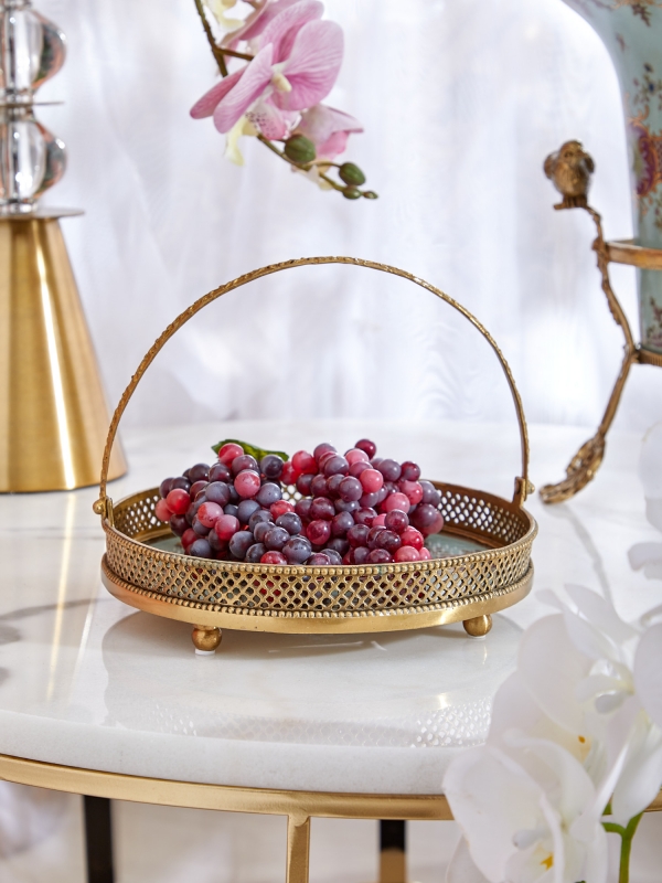 Такая декоративная тарелка-поднос особенно уместна в интерьерах в стиле неоклассика, винтаж, прованс, шебби-шик и романтичная классика. Она красиво сочетается с мраморными, светлыми деревянными и стеклянными поверхностями, с латунной и бронзовой фурнитурой, текстилем в молочных, пудровых и небесных оттенках. Если Вы хотите смягчить строгую обстановку кабинета, спальни или гостиной, поднос добавит интерьеру декоративную глубину, ощущение истории и тщательно продуманного вкуса.
