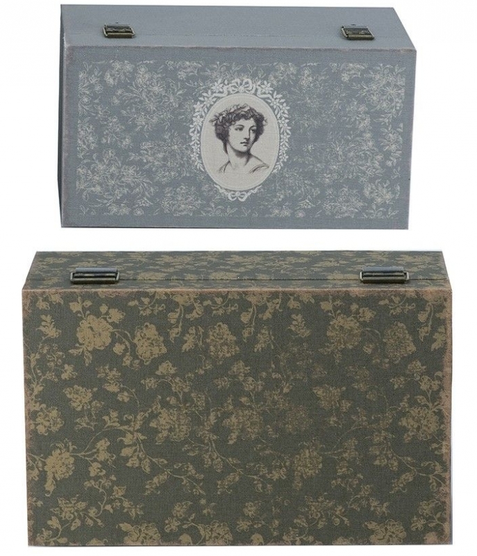 «Набор шкатулок Bendigeidfran» в серо-оливковой гамме с винтажным декором | винтажная классика | для хранения украшений и памятных мелочей от HomeAdore