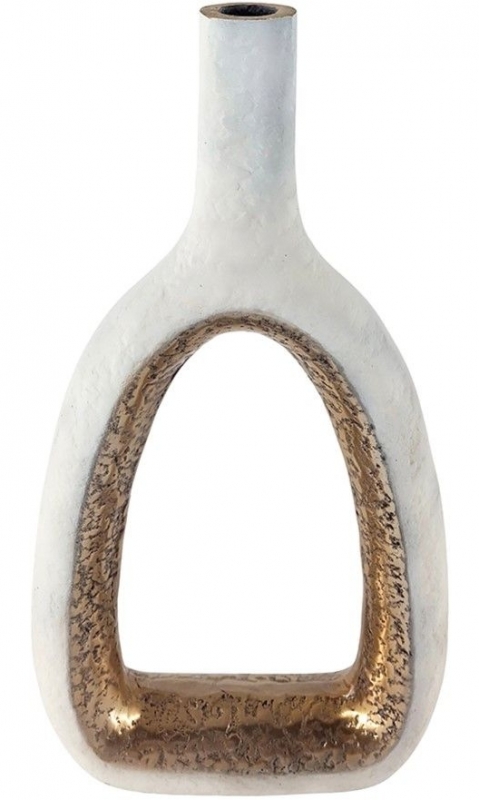 Ваза «Darrell» представляет собой яркий пример стиля Ар-деко, который символизирует роскошь и элегантность. Выполненная в нежных белых тонах с эффектной золотистой отделкой, она привлекает внимание своим оригинальным силуэтом. Материал — металл с текстурированной поверхностью, что придаёт изделию уникальность и глубину. Каждый элемент вазы продуман до мелочей, что делает её не просто предметом декора, а настоящим произведением искусства.