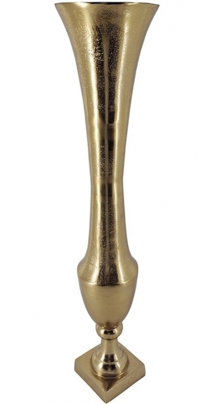 Изысканная ваза имеет высокую изящную форму, текстурную отделку на корпусе и прямоугольное основание, выполнена из высококачественного алюминия в цвете античного золота. Поставьте изделие отдельно, в сочетании с предметами из этой коллекции или в составе роскошного цветочного букета. Силуэт и роскошная цветовая гамма позволяют этой вазе гармонично вписываться в переходный, современный, эклектичный и дворцовый стили.