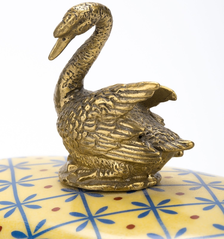 - выразительный дизайн с бронзовой фигуркой лебедя делает шкатулку заметным интерьерным акцентом
