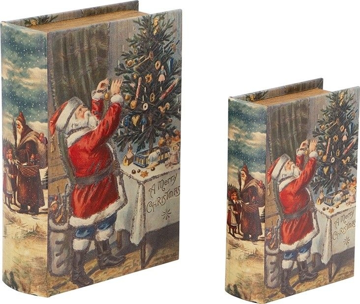 «Набор из двух шкатулок в виде книг Xmas» с винтажным рождественским сюжетом | Ретро | Новогодний декор от HomeAdore