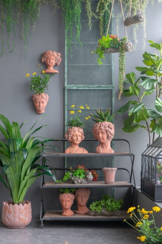 Настенное кашпо в виде головы античной девы. Растения, размещенные в это изделие, будут смотреться восхитительно, создавая необычный образ в вашем интерьере.