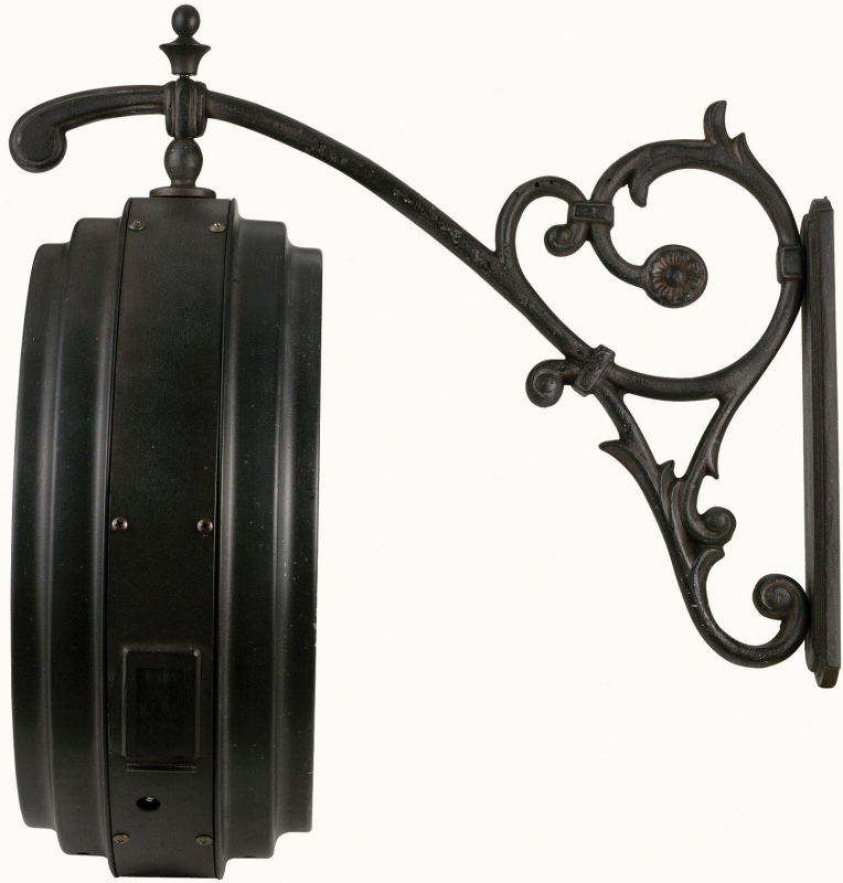 - Эти привлекательные двусторонние настенные часы разработаны для использования как внутри помещений, так и на улице. Термометр, помещенный над часовым делением в позиции 6, показывает температуру по шкале Фаренгейта.