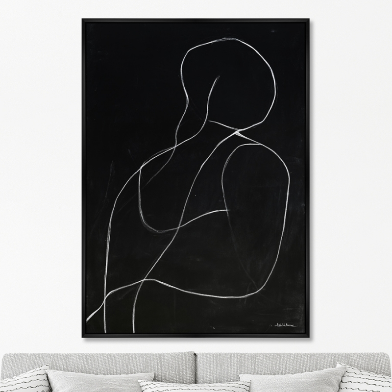 На картине изображен силуэт человека, выполненный в минималистичном стиле. Контраст белых линий на черном фоне создает эффект глубины и загадки. Художник ArtNoMore мастерски передает ощущение движения и эмоциональной связи через простоту формы. Использование высококачественного хлопкового холста, напечатанного на профессиональном принтере, обеспечивает исключительную детализацию и насыщенные цвета. Репродукция обрамлена черной рамой из полистирола, что придаёт ей стильный и завершённый вид. Удобное настенное крепление на задней стороне позволяет легко повесить картину в любом помещении.