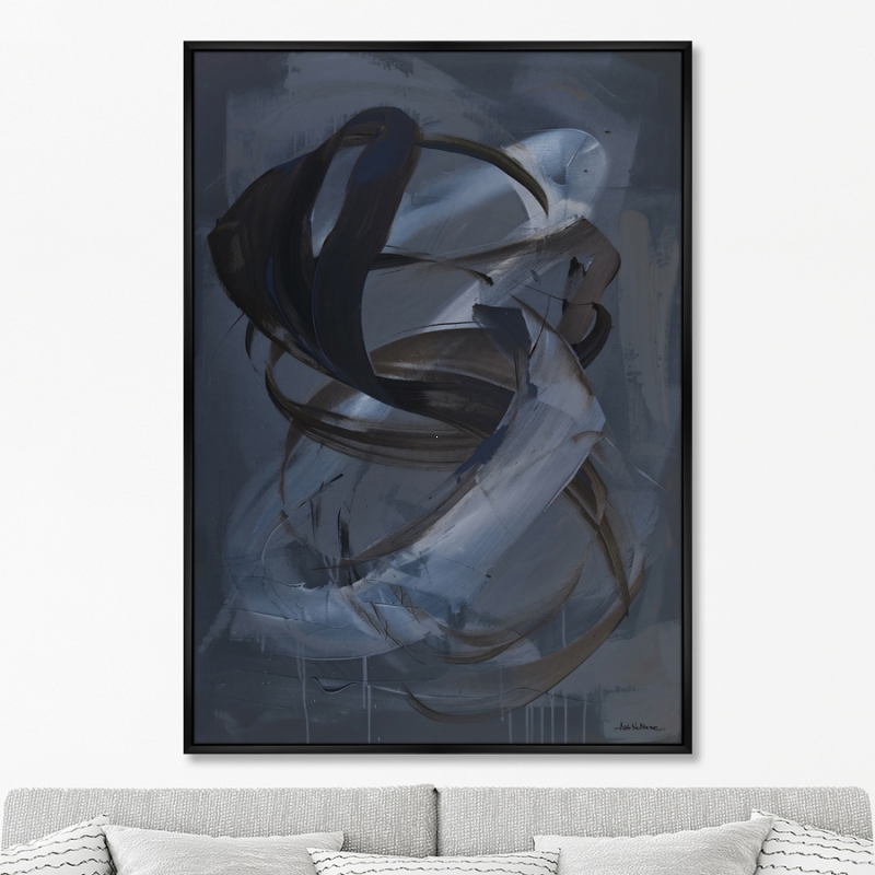 Эта работа соединяет в себе сложные линии и формы, которые символизируют бесконечность и движение. Стиль картины можно отнести к абстракции, где преобладают холодные оттенки серого, черного и синего, создавая гармоничное сочетание. Холст из хлопка натянут на прочный деревянный подрамник, а декоративная рамка из полистирола добавляет завершенности. Профессиональная печать обеспечивает высокую детализацию и насыщенность цветов, что делает изображение по-настоящему реалистичным. Каждый штрих на холсте передает эмоции и ощущение динамики, заставляя зрителя задуматься о бесконечных возможностях.