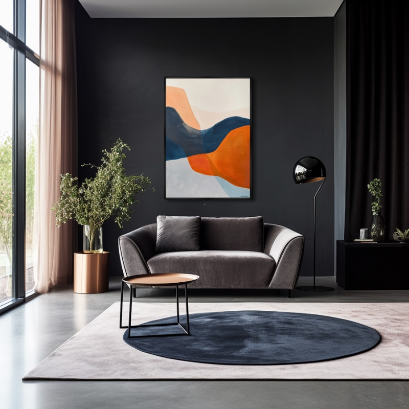 Постер «Sunset in the Spectrum» представляет собой абстрактную композицию, в которой переплетаются теплые и холодные оттенки. Яркие оранжевые, глубокие синие и спокойные серые тона создают эффект плавного перехода, выражая идею единства природы и эмоций. Художественный стиль минималистичен, что позволяет акцентировать внимание на цветах и формах. Репродукция выполнена на качественном хлопковом холсте с высокой детализацией, что обеспечивает максимальную реалистичность изображения. Декоративная рамка из полистирола добавляет завершенности и стиля, а удобное настенное крепление «крокодил» делает процесс установки простым и быстрым.